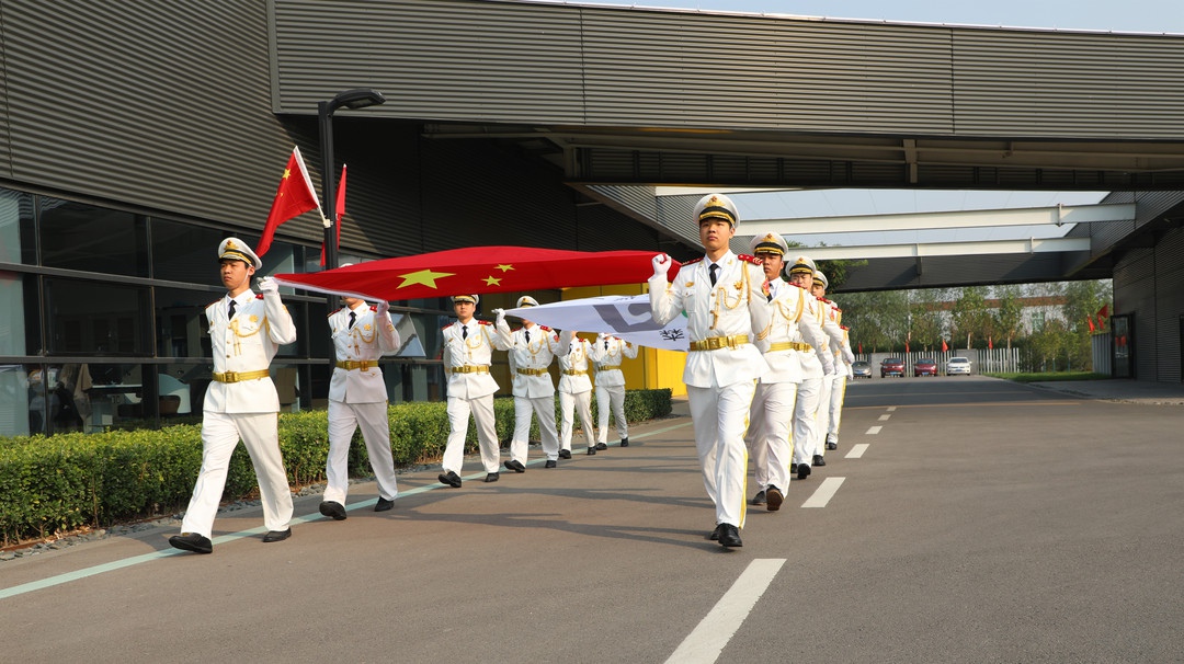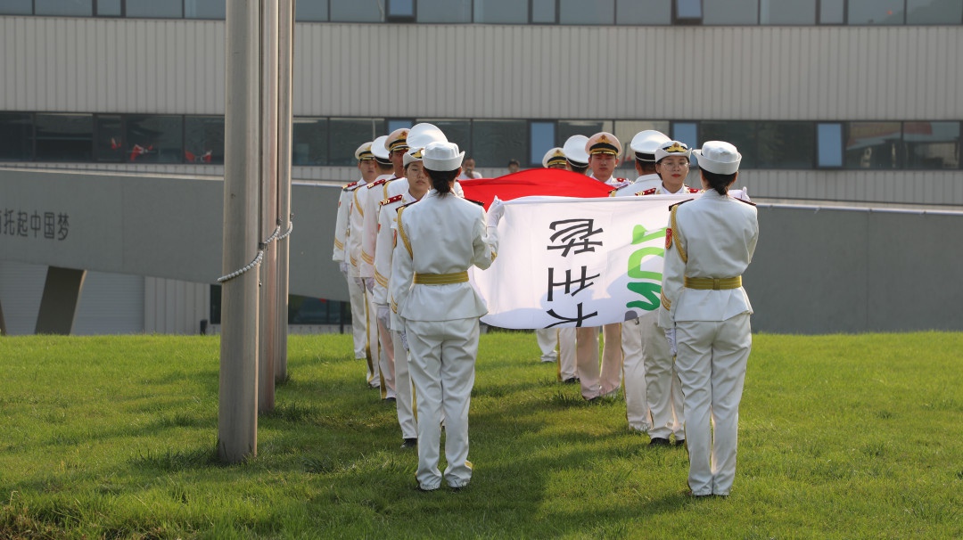 鲜艳的五星红旗伴随着雄伟、嘹亮的《中华人民共和国国歌》、及全体人员的注目礼下,冉冉升起,迎风飘扬。